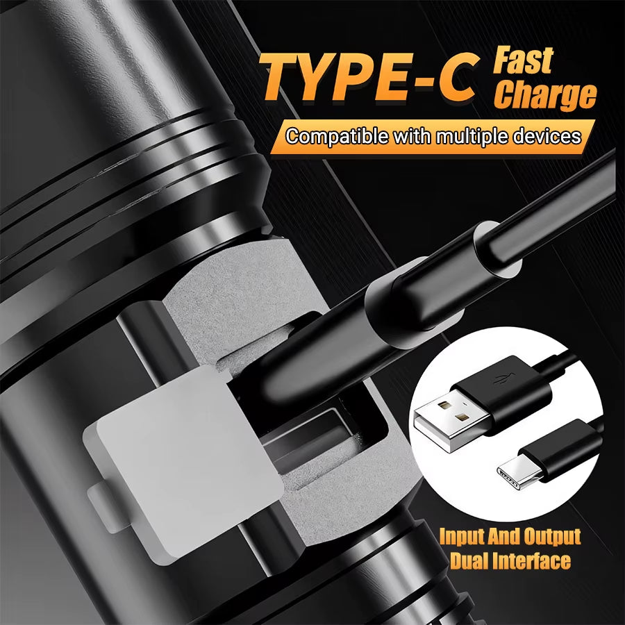 Flashlight Type-C fast charging, convenient and fast, can be charged by various devices such as power bank